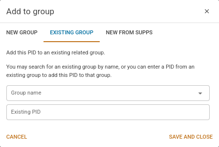 The S26A PIDs text area allows you to enter a comma or whitespace separated list of PIDs to add to the related group. If you've set the group type, the PIDs must have the same valuation basis as the current related group. If they don't, they'll be automatically removed and you'll see an error message.