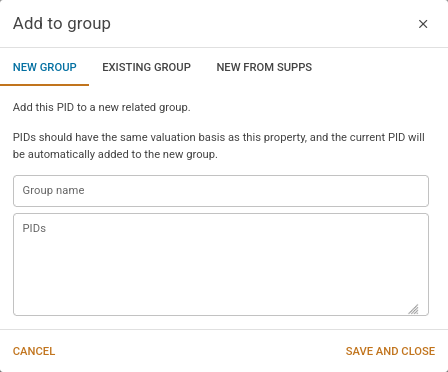 If the property or supp is part of an S26A related group, this panel allows you to edit parent-level information about the group. Any field that you specify here is shared between all of the PIDs in the related group.